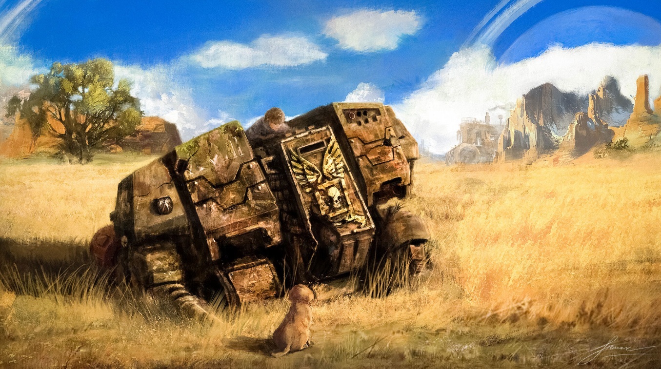 Boy Perched Atop a Fallen Castra Ferrum Pattern Dreadnought